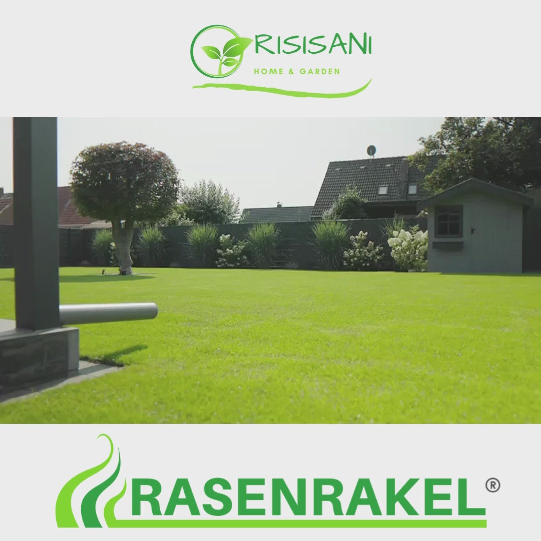 Der original RISISANI® Rasenrakel aus hochwertigem, rostfreiem V2A Edelstahl. Perfekt zum Rasen sanden, ebnen, anlegen neuer Rasenflächen im Garten, u.v.m.
